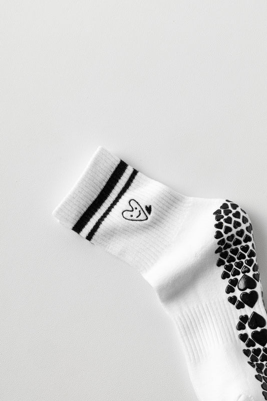 Cute Heart embroidered grip socks - White