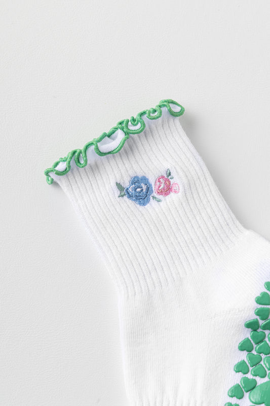 Spring Blooms Floral Embroidered Lettuce Edge Grip Socks