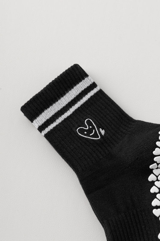 Cute Heart embroidered grip socks - Black