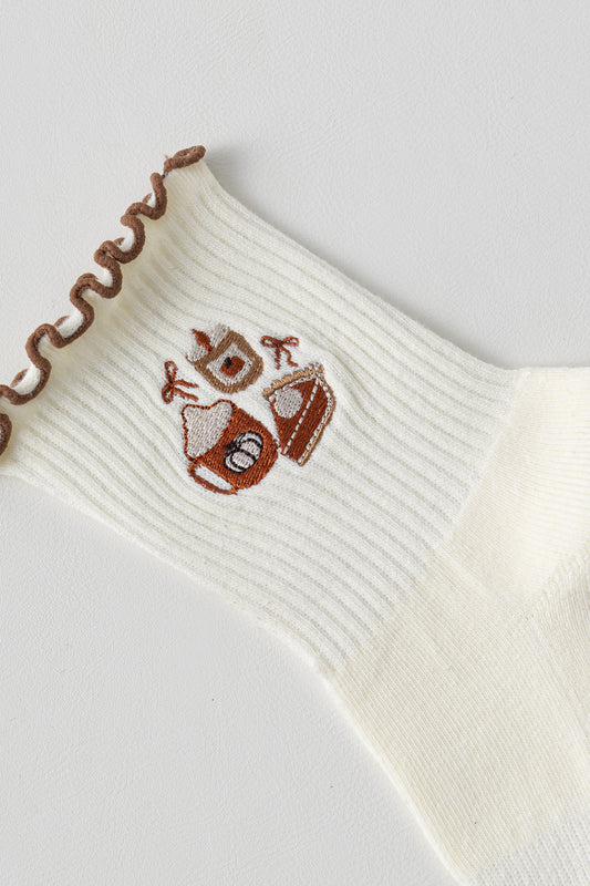 Spring Blooms Floral Embroidered Lettuce Edge Grip Socks